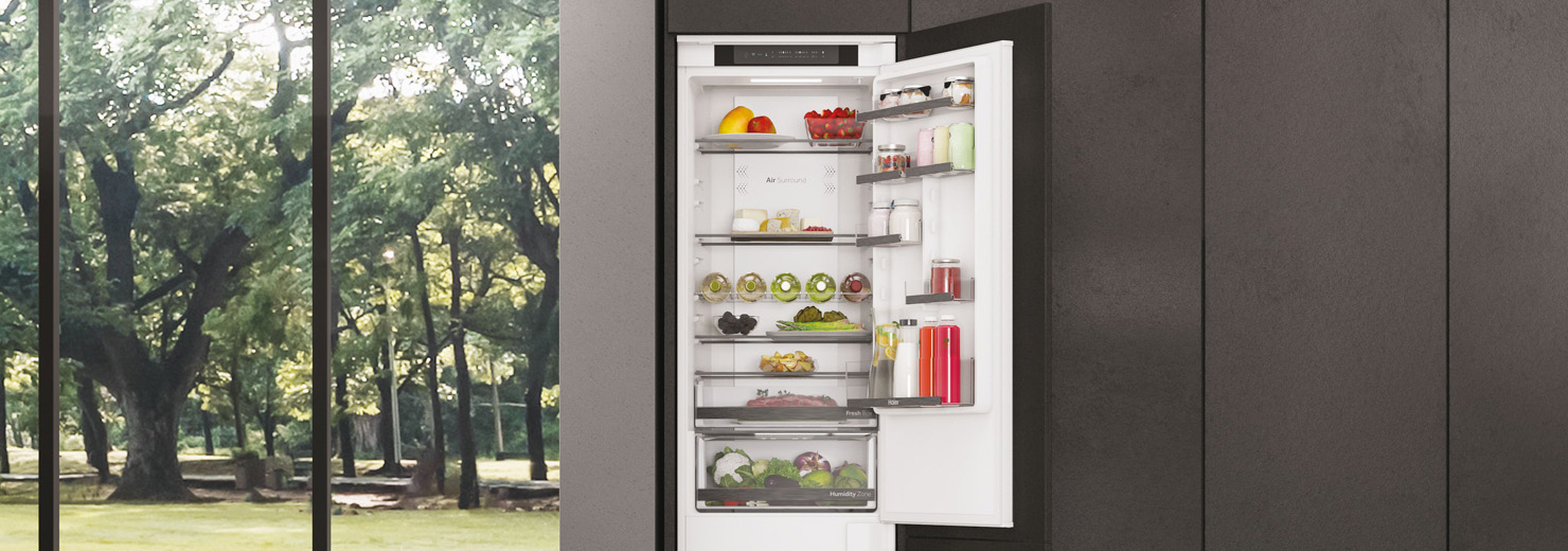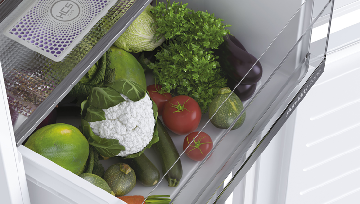 Овощи и фрукты следует хранить в оптимальных условиях, чтобы они не потеряли свою пищевую ценность. Специальный ящик для зоны влажности сохраняет деликатные продукты свежими в два раза дольше. Это благодаря технологии HCS (Humidity Control System) – мембране из растительных волокон, которая поддерживает влажность на уровне 90% и управляет ею автоматически. Соответствующая циркуляция прохладного воздуха внутри зоны означает, что хранящиеся продукты дольше сохраняют свою пищевую ценность.