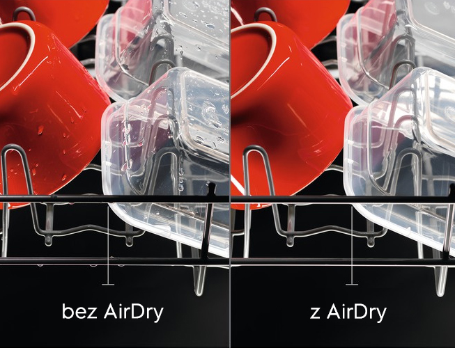 Использование циркуляции воздуха в посудомоечных машинах AirDry позволяет улучшить результаты сушки в 3 раза. Посудомоечная машина открывается сразу после завершения цикла, позволяя посуде высохнуть естественным путем. Без риска повредить фасады мебели и кухонные столешницы.