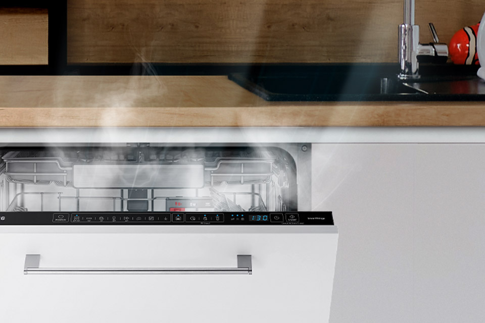 Когда посудомоечная машина закончит работу, ее дверца автоматически откроется на 10 см. Это позволяет пару быстрее выходить, не оседая на посуде, что ускоряет ее высыхание и минимизирует риск образования разводов.