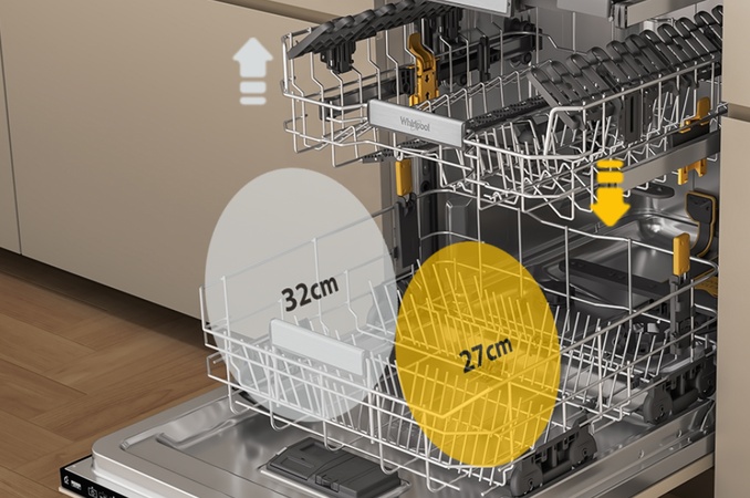 Новая посудомоечная машина Whirlpool с внутренней частью Maxi Space. Больше места для всех типов посуды.