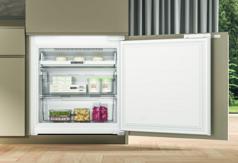Новый встраиваемый холодильник с морозильной камерой с системой Total No Frost имеет самую большую вместимость среди устройств с технологией No Frost.* Благодаря дополнительному пространству он достигает полезного объема 394 литров, обеспечивая на 50% больше полезное пространство.**
