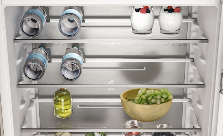 Скрытая от глаз пользователя направляющая — решение, поддерживающее минималистичный вид холодильника. Она работает так же, как традиционная раздвижная система, но полностью скрыта за дверцей устройства.***