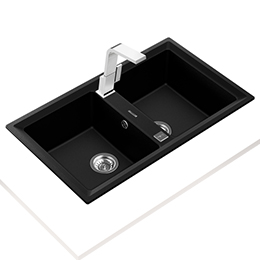 Абсолютный черный цвет, подчеркнутый матовой поверхностью раковины. Глубина цвета, в которой можно потеряться, добавит великолепия современной элегантной кухне.