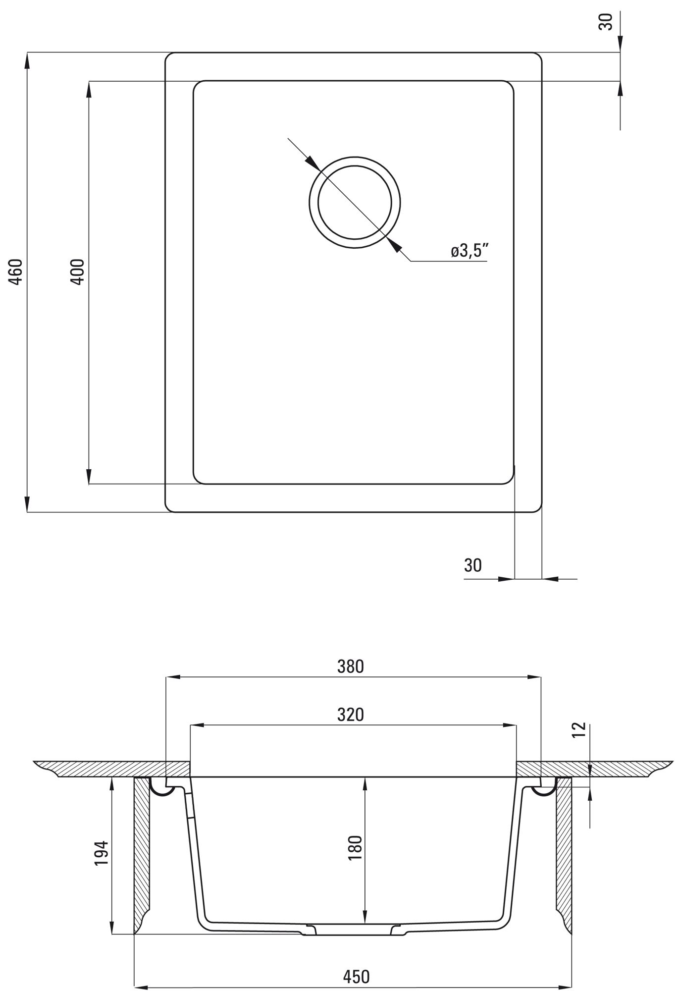 Длина: 380 ммШирина: 460 мм Глубина чаши: 180 ммДля шкафа: 400 ммМодель раковины: 1 чашаСлив: 3,5 дюйма