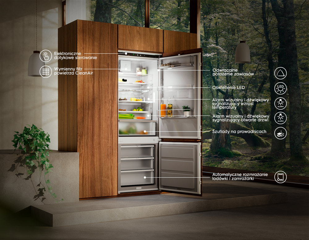 Свобода хранения продуктов в каждом уголке холодильника и защита их качества благодаря стабильной температуре и влажности во всем холодильнике.