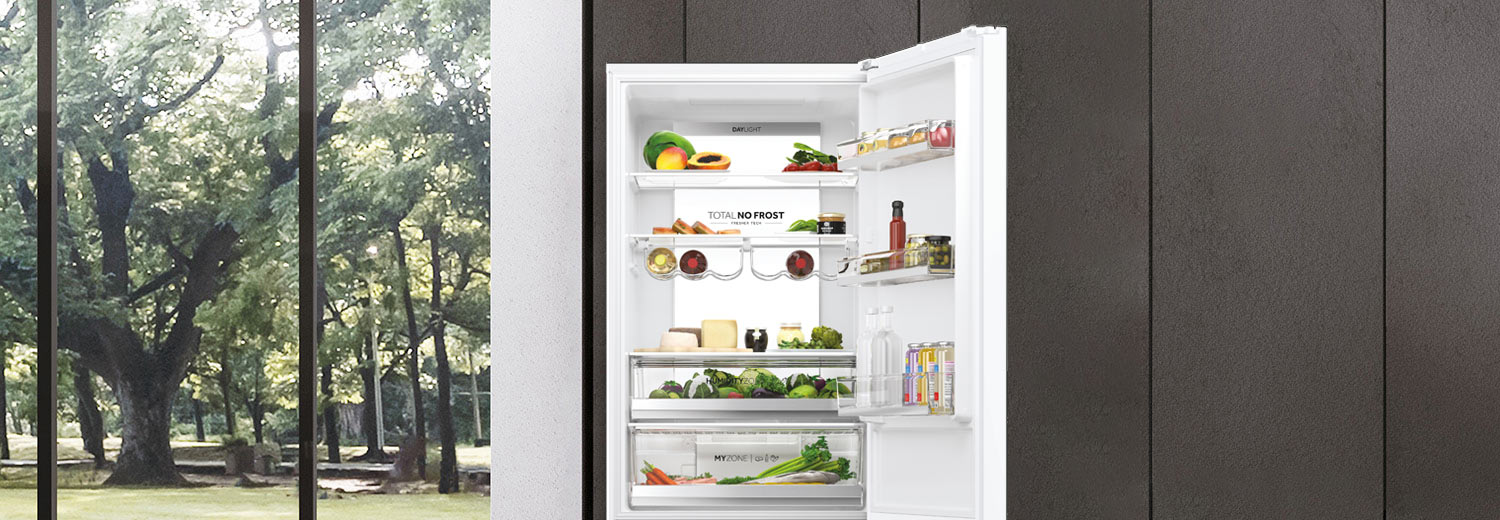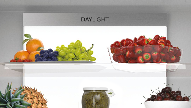 Задняя стенка холодильника покрыта светодиодной подсветкой, что гарантирует отличную видимость всех продуктов, независимо от того, насколько наполнен холодильник. Благодаря этому вы легко сможете найти даже те продукты, спрятанные в его укромных уголках. Кроме того, постепенное увеличение интенсивности освещения после открытия двери еще больше повысит комфорт использования.