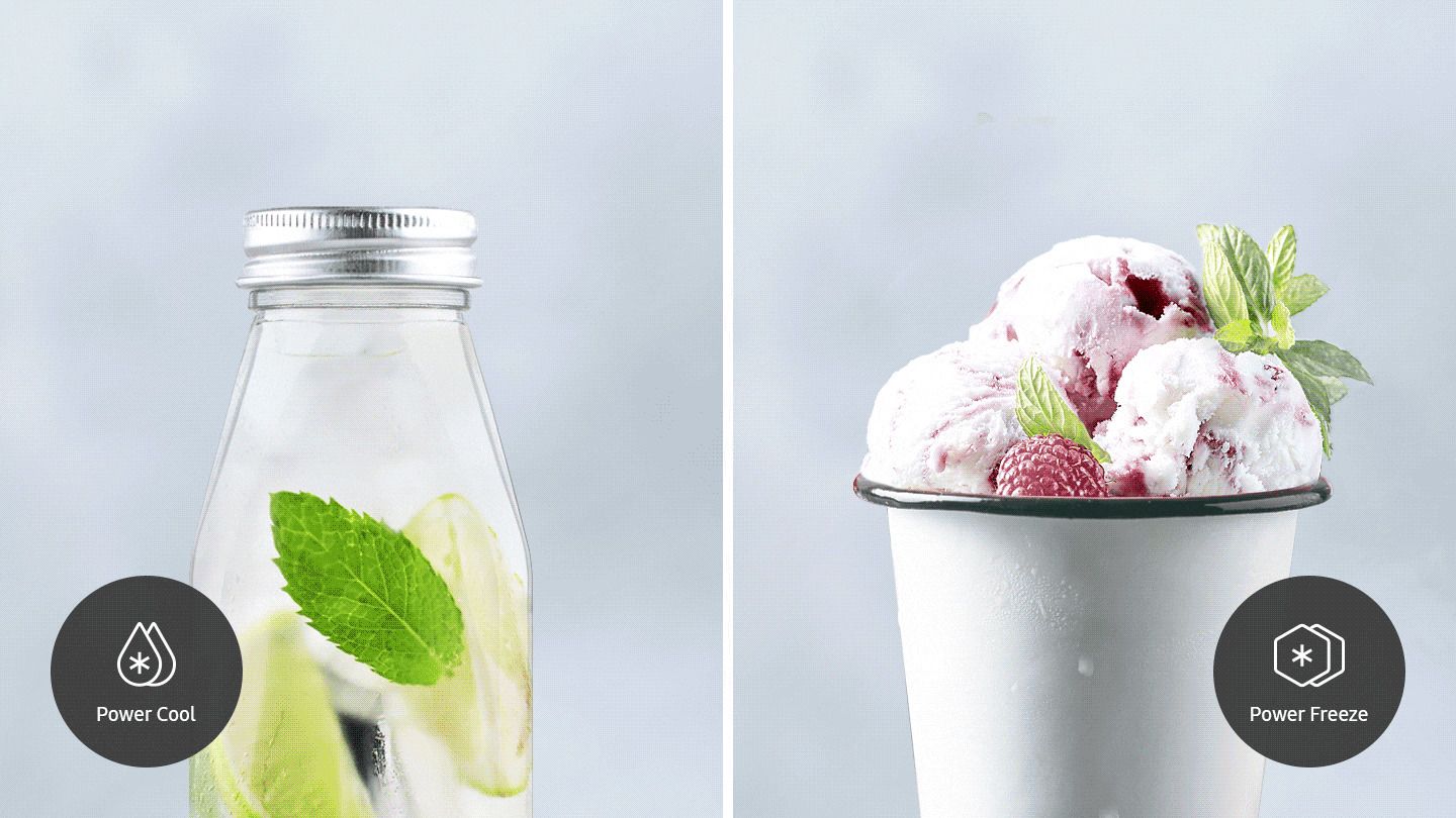 Функция Power Cool интенсивно нагнетает холодный воздух в холодильник. Быстро охладите продукты и любимые напитки за 32 % меньше времени.* Функция Power Freeze устанавливает температуру в морозильной камере на самый низкий уровень и активирует интенсивную подачу холодного воздуха. Благодаря этому вы сможете приготовить кубики льда или продукты глубокой заморозки до 35 % быстрее.*
