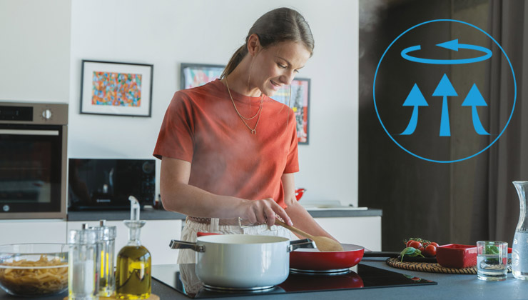 Подберите мощность вытяжки под свои текущие потребности благодаря удобному и простому управлению. На первой скорости вытяжка потребляет меньше энергии и работает тише, но обладает большей мощностью._x000D_ пригодится, когда вы готовите несколько блюд одновременно и вам нужно быстро удалить большое количество дыма.