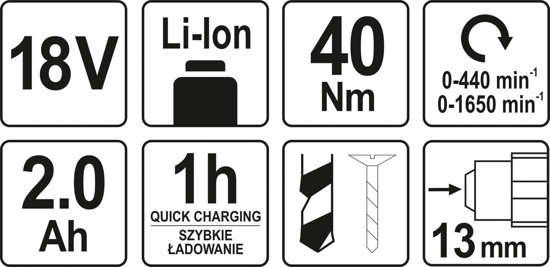 YATO YT-82780 НАБОР ДРЕЛЬ/ОТВЕРТКА 18 В (АККУМУЛЯТОР, ЗАРЯДНОЕ УСТРОЙСТВО)