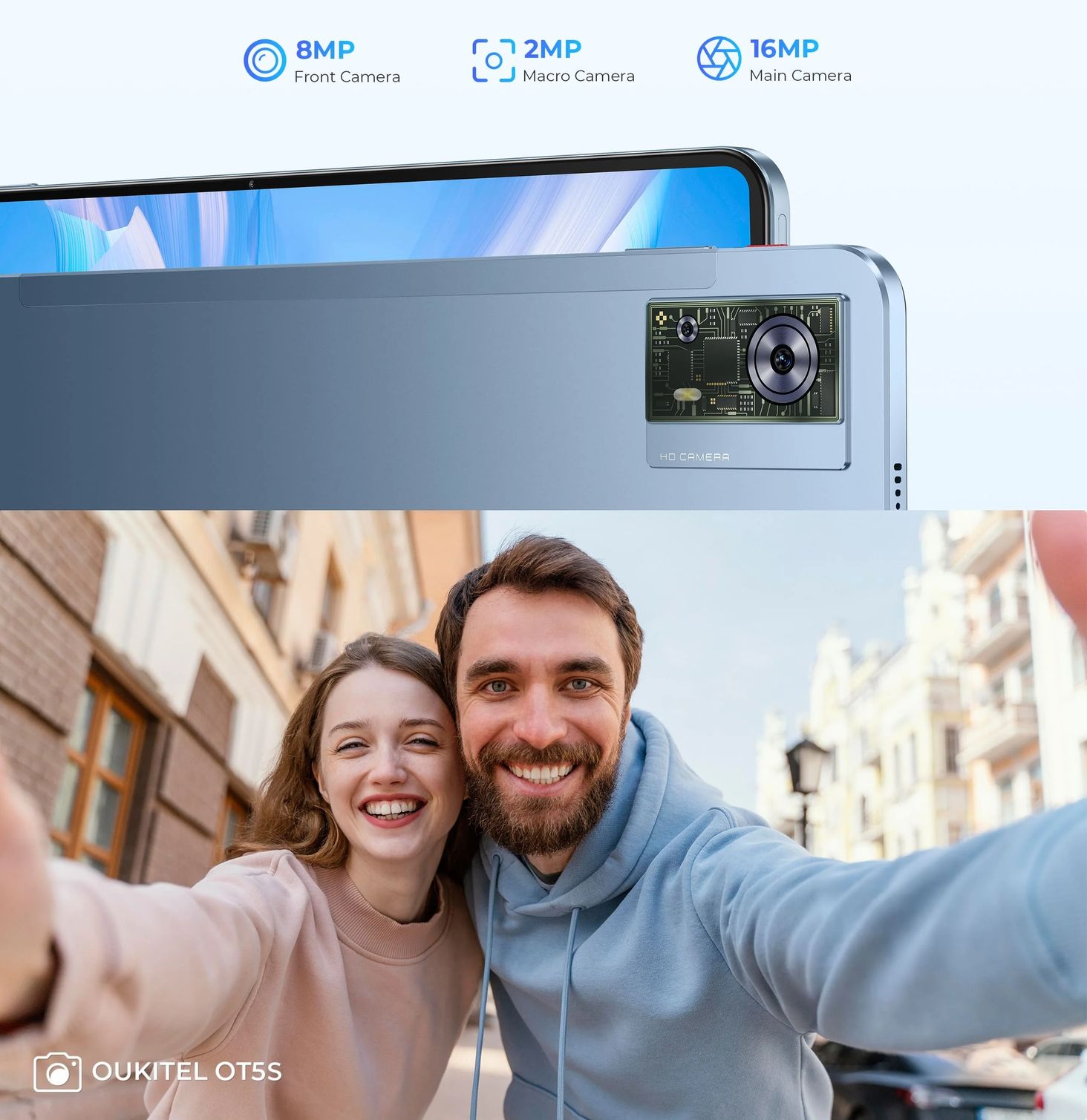 Планшет Oukitel оснащен усовершенствованным набором камер, позволяющим запечатлеть незабываемые моменты в высочайшем качестве. Основная камера 16 МП делает четкие и детализированные фотографии, идеально подходящие для повседневной фотографии и профессиональных снимков. Дополнительная макрокамера с разрешением 2 МП позволяет приблизиться к объектам съемки и запечатлеть детали, которые обычно остаются незамеченными: от красоты маленьких растений до структуры крошечных объектов.