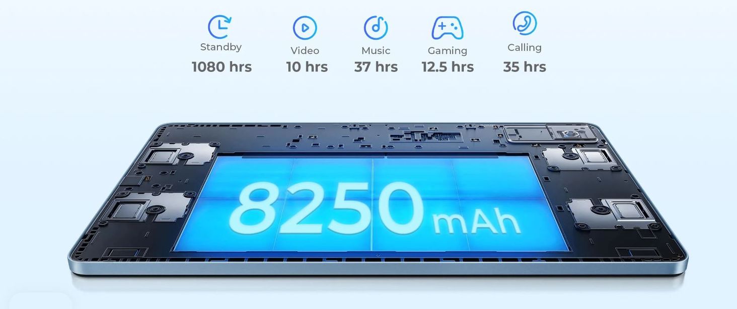 Планшет может воспроизводить музыку до 37 часов, что делает его идеальным компаньоном на вечеринках, пикниках или дома. Игроки могут наслаждаться интенсивным игровым процессом до 12,5 часов, обеспечивая плавность и увлекательность игры. Благодаря этому чрезвычайно эффективному аккумулятору планшет Oukitel позволяет вам сосредоточиться на том, что вы делаете, не беспокоясь о том, что заряд закончится, обеспечивая надежность и непрерывность работы в любой ситуации.