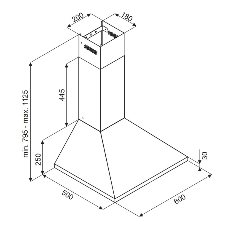 Размеры кухонной вытяжки Bertez 60.3 Черная