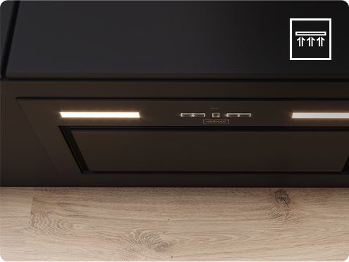 Для тех, кто предпочитает сам решать интенсивность работы вытяжки, мы оставили управление кнопками Soft Touch. С их помощью выберите подходящие настройки вытяжки. Они чрезвычайно чувствительны к давлению, поэтому управление устройством еще никогда не было таким интуитивно понятным.