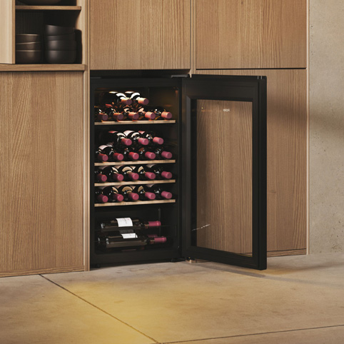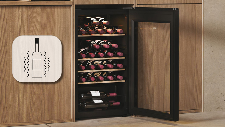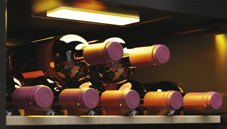 Теплое светодиодное точечное освещение, расположенное вверху, эффектно продемонстрирует ваши вина. Источник света излучает очень мало тепла, что имеет решающее значение для поддержания оптимальной температуры внутри холодильника.