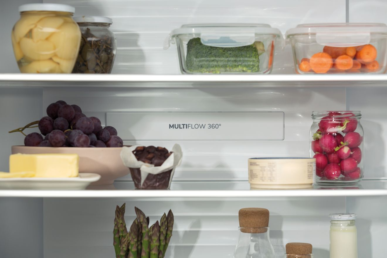 Система вентиляции MultiFlow 360° равномерно распределяет воздух в холодильном отделении, обеспечивая оптимальную циркуляцию воздуха и наилучшие условия хранения продуктов.