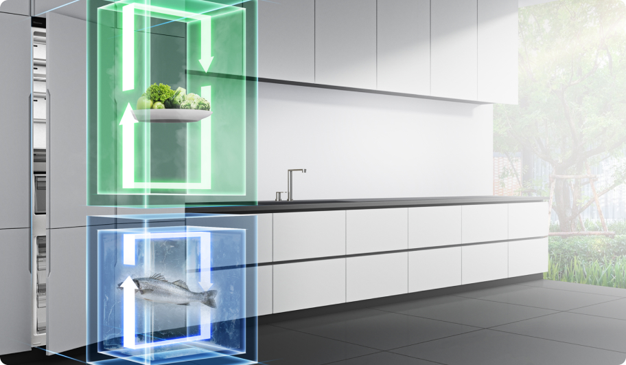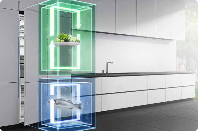 Два_x000D_ Независимые системы охлаждения и заморозки поддерживают идеальный уровень влажности и температуры в обоих помещениях._x000D_ палаты. Благодаря этому различные виды продуктов можно хранить, не опасаясь проникновения запахов._x000D_ Продукты дольше остаются свежими, и вы сможете насладиться их полным вкусом.