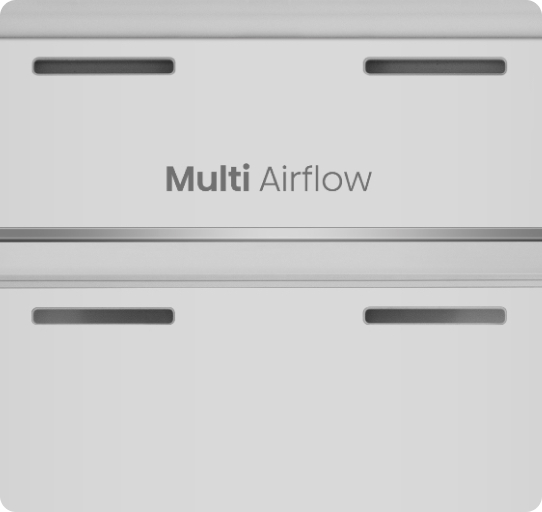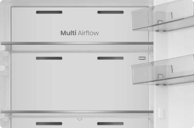 Технология Multi Air Flow обеспечивает равномерное распределение воздуха по всему устройству. Спасибо_x000D_ Благодаря этому в холодильнике-морозильнике поддерживается постоянная оптимальная температура, что гарантирует свежесть._x000D_ продукты на всех полках и ящиках.