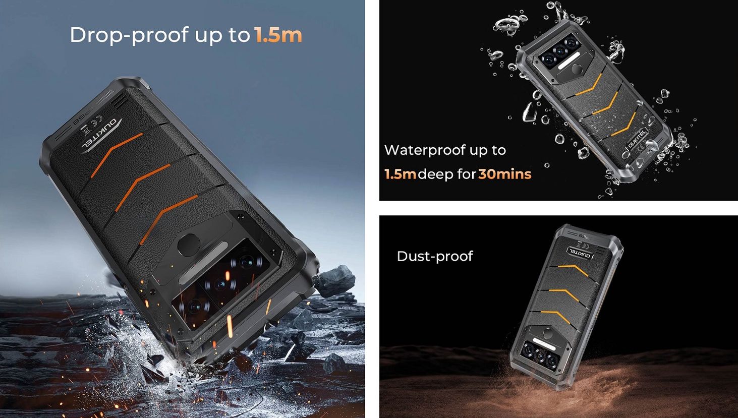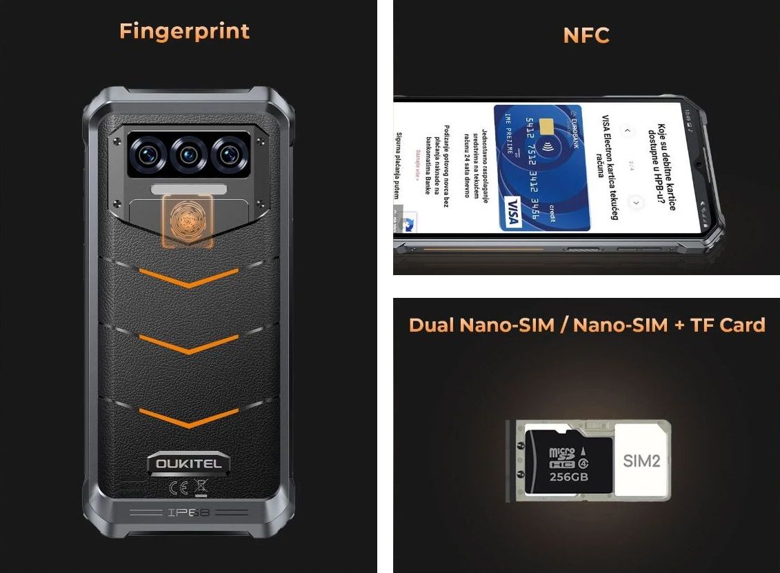 Oukitel WP38 является синонимом надежности и долговечности, что подтверждено сертификатами IP68, IP69K и MIL-STD-810H. Эти маркировки доказывают исключительную устойчивость смартфона к воде, пыли, ударам и экстремальным погодным условиям. WP38 выдерживает погружение в воду, воздействие высокого давления и падение с большой высоты, что делает его идеальным компаньоном для людей, работающих в труднопроходимой местности, путешественников и всех, кому требуется надежное устройство для повседневного использования._x000D_ Независимо от проблем, ваш смартфон остается надежным, обеспечивая полную защиту и долговечность, способную выдерживать даже самые суровые условия.