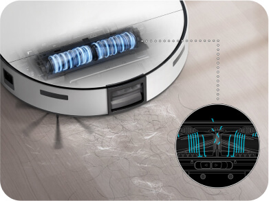 Высокая мощность всасывания обеспечивает эффективную уборку дома. Высокопроизводительный двигатель обеспечивает высокую мощность всасывания, благодаря чему пылесос легко всасывает с пола волосы, грязь и мелкие частицы пыли. Увеличенный крутящий момент обеспечивает интенсивную уборку пылесосом и гарантирует бесшумную, энергосберегающую и безотказную работу Bespoke Jet Bot Combo AI Steam в течение многих лет.