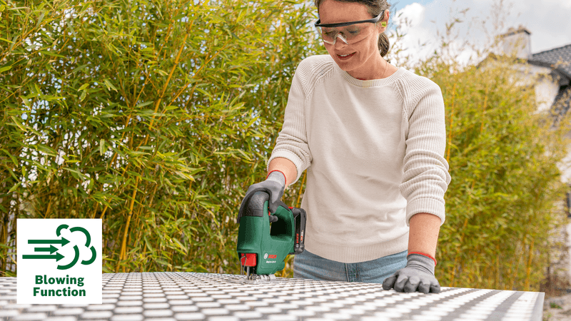 Встроенная функция обдува удаляет пыль во время резки, обеспечивая хорошую видимость линии реза. Обеспечение оптимальной видимости поверхности помогает повысить точность резки.