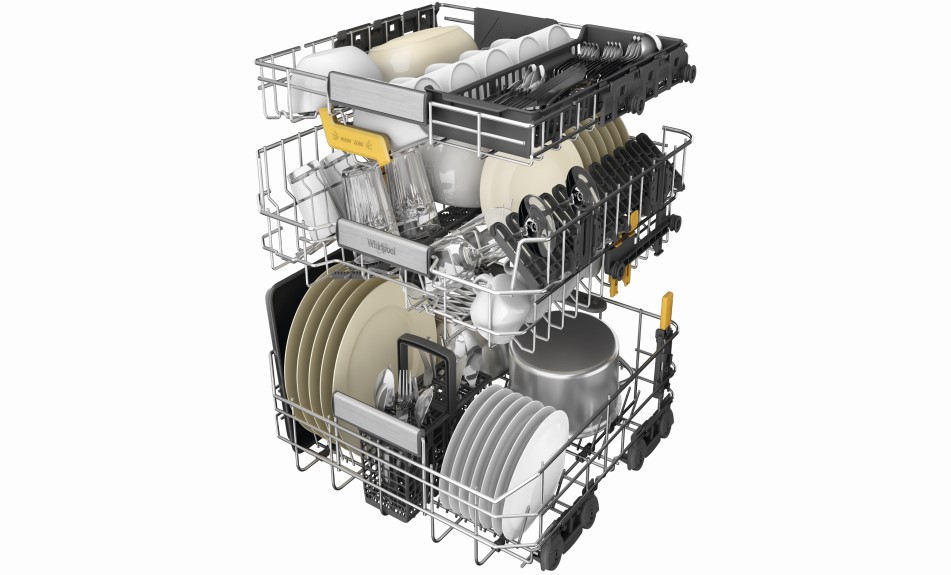 Новая посудомоечная машина Whirlpool с внутренней частью Maxi Space. Больше места для всех типов посуды.