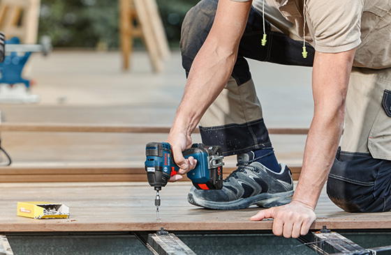 Инструмент можно успешно использовать для завинчивания большого количества шурупов в древесину, например, в террасную доску. Работа с инструментом не перегружает запястье пользователя благодаря храповому механизму. Инструмент подходит и для сверления древесины – с помощью дрели с шестигранной ручкой. Функция ограничения скорости, в свою очередь, влияет на точность завинчивания.