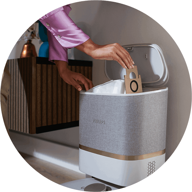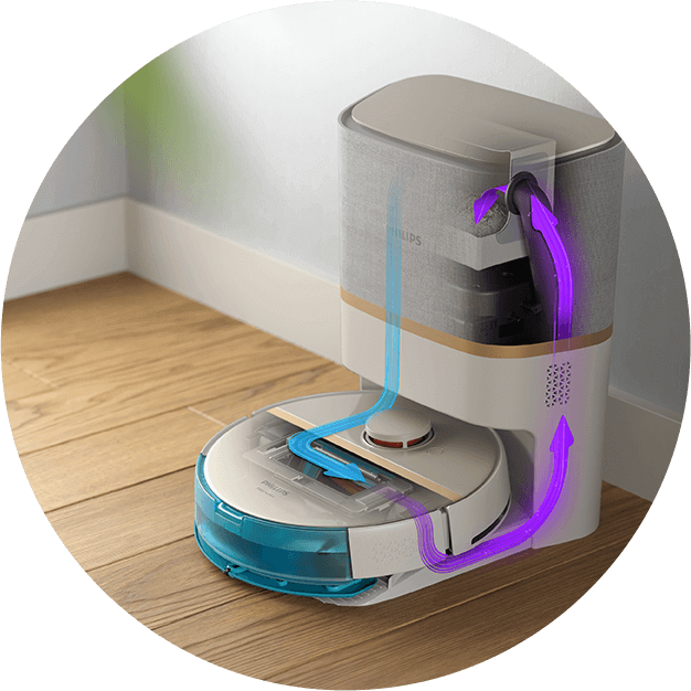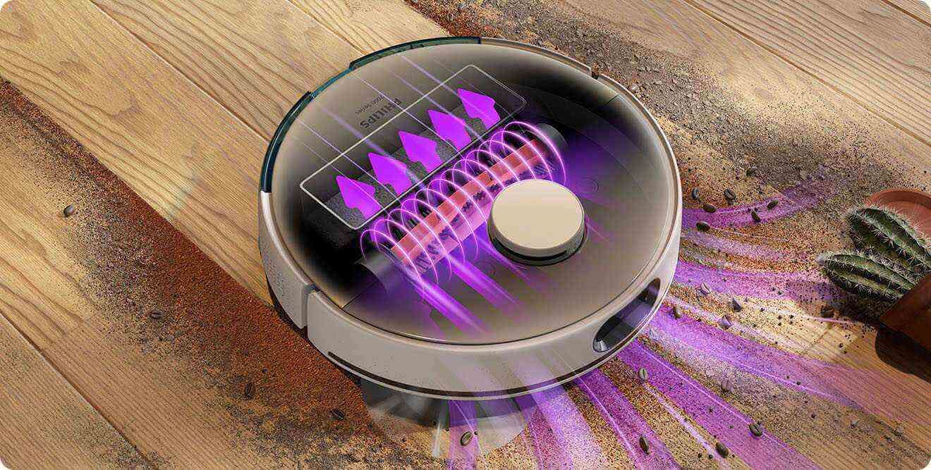 Наслаждайтесь максимальной эффективностью очистки благодаря мощности 5000 Па. Забудьте о крошках, волосах и более крупных частицах грязи. За вас с ними справится робот-уборщик Philips Aqua 7000.