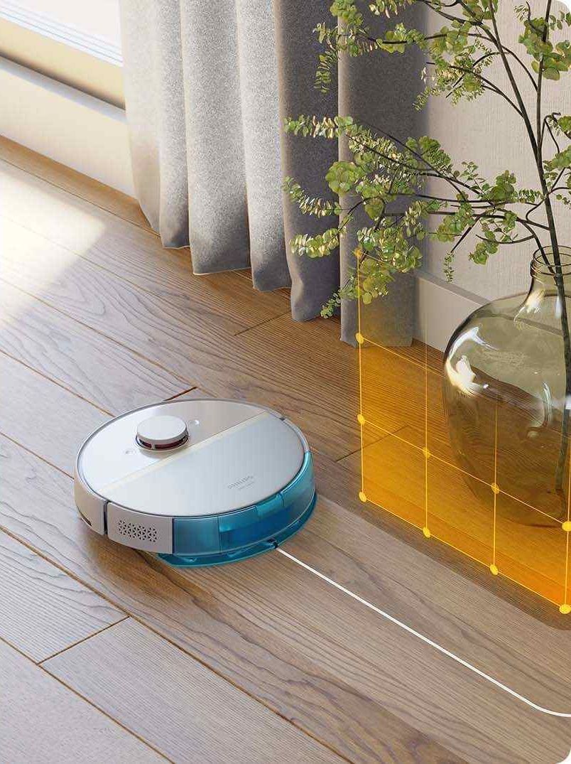 Philips Aqua 7000 распознает такие предметы, как обувь, игрушки и другие мелкие предметы, лежащие на полу. Он может точно избежать их и тщательно очистить территорию вокруг них.