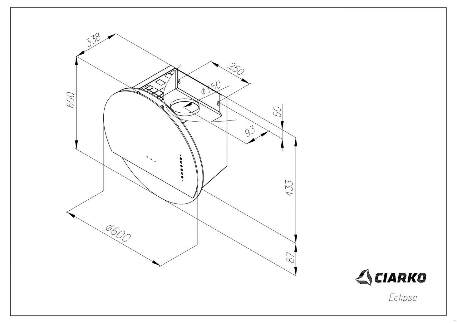 Высота 600 мм Ширина 600 мм Глубина 338 мм Вес нетто 15 кг Класс энергопотребления А++ Мин. расстояние от электрической плиты. 55 см Мин. расстояние от газовой плиты. 65 см Диаметр воздуховыпускного отверстия 15 см Мощность двигателя 160 Вт Мощность освещения 5 Вт Суммарная мощность 165 Вт Длина электрического кабеля 2 м