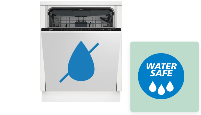 Система Water Safe защищает от протечек воды и затопления помещения. В случае протечки воды подача воды в посудомоечную машину автоматически отключается.