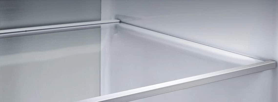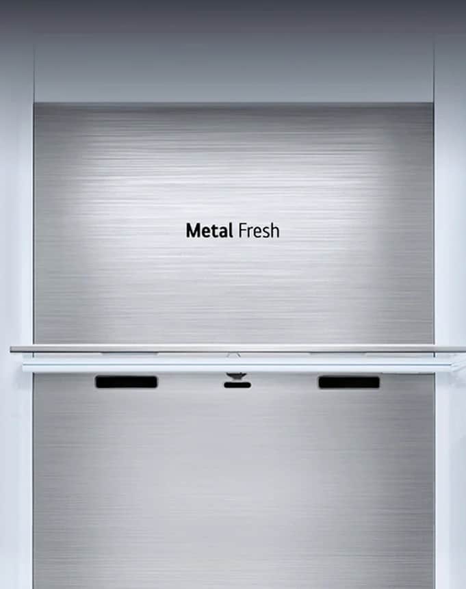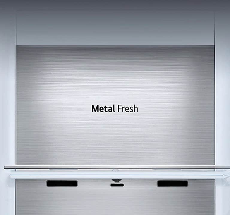 *Metal Fresh™ — это фраза, образованная от выражений «металлическая ламинированная конструкция» (конструкция с металлическим покрытием — имеется в виду выходное отверстие для холодного воздуха) и «NatureFresh» (от технологий LINEARCooling™ и DoorCooling+™). *Само использование металлических элементов не обеспечивает большей свежести продуктов, хранящихся в холодильнике.