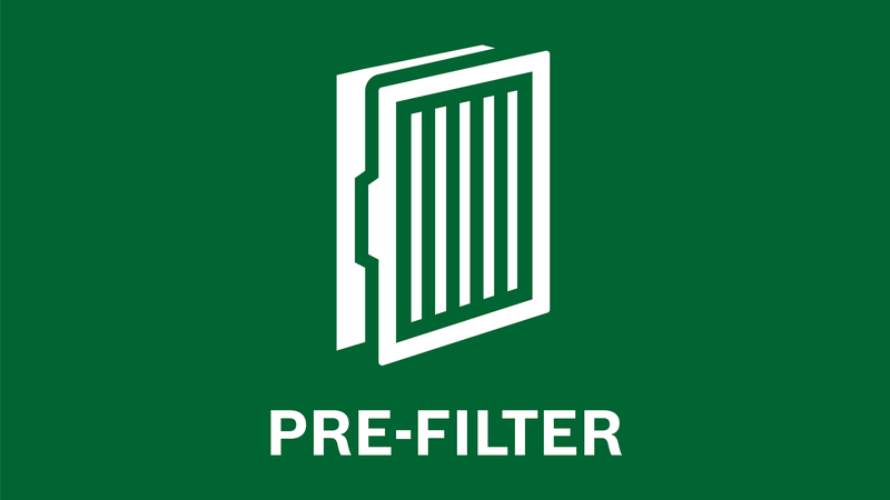Фильтр предварительной очистки расположен перед плоским складчатым фильтром, что повышает его долговечность и сводит к минимуму засорение. Этот фильтр, являющийся дополнительным барьером против пыли, также легко очищается.