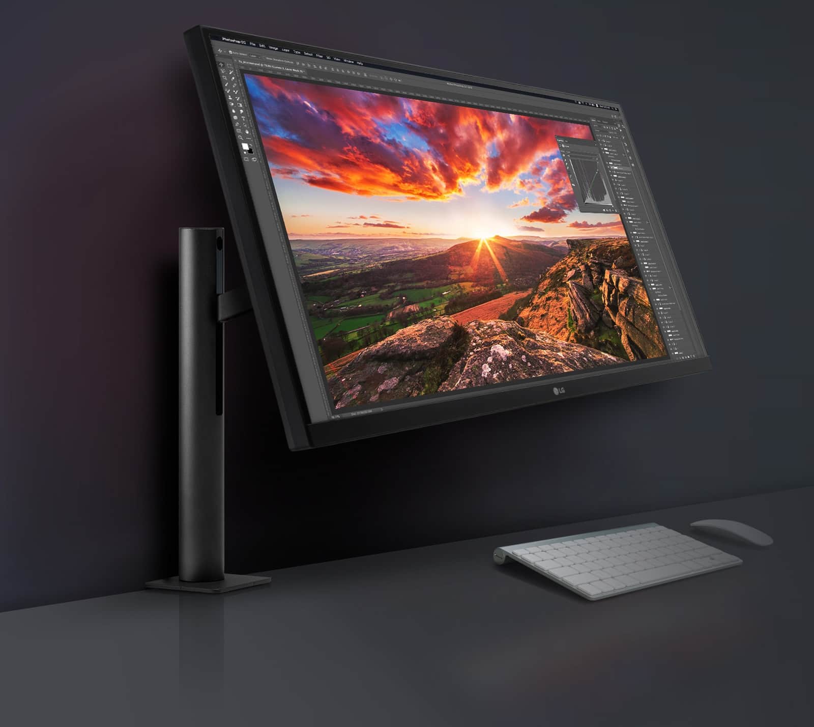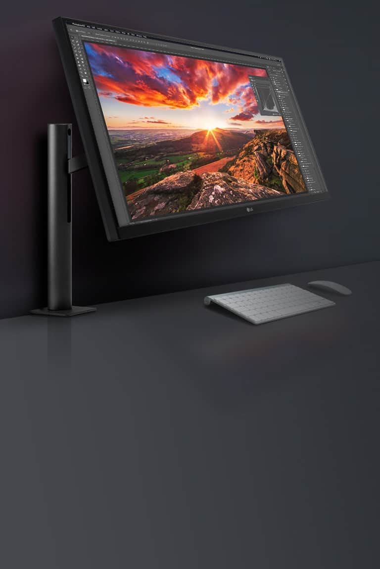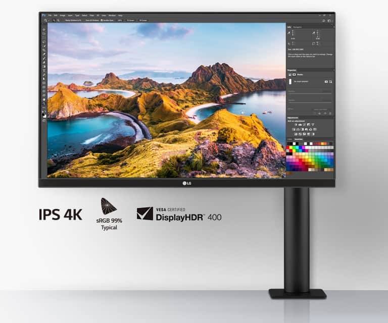 Монітор LG UltraFine™ Ergo з охопленням 99% sRGB (тип.) і технологією VESA DisplayHDR400 забезпечує виняткову якість зображення. 27-дюймовий IPS-екран 4K забезпечує комфортне використання завдяки зменшенню зміни кольору з різних сприятливих точок.