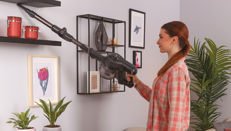 Пилосос H-FREE характеризується довгою трубою та малою вагою, а також оснащений щілинним інструментом, що дозволить вам зручно прибирати високі місця. Завдяки цьому ви максимально підвищите комфорт використання, уникнете необхідності нахилятися та збільшите діапазон роботи пристрою, легко дотягуючись до стелі.