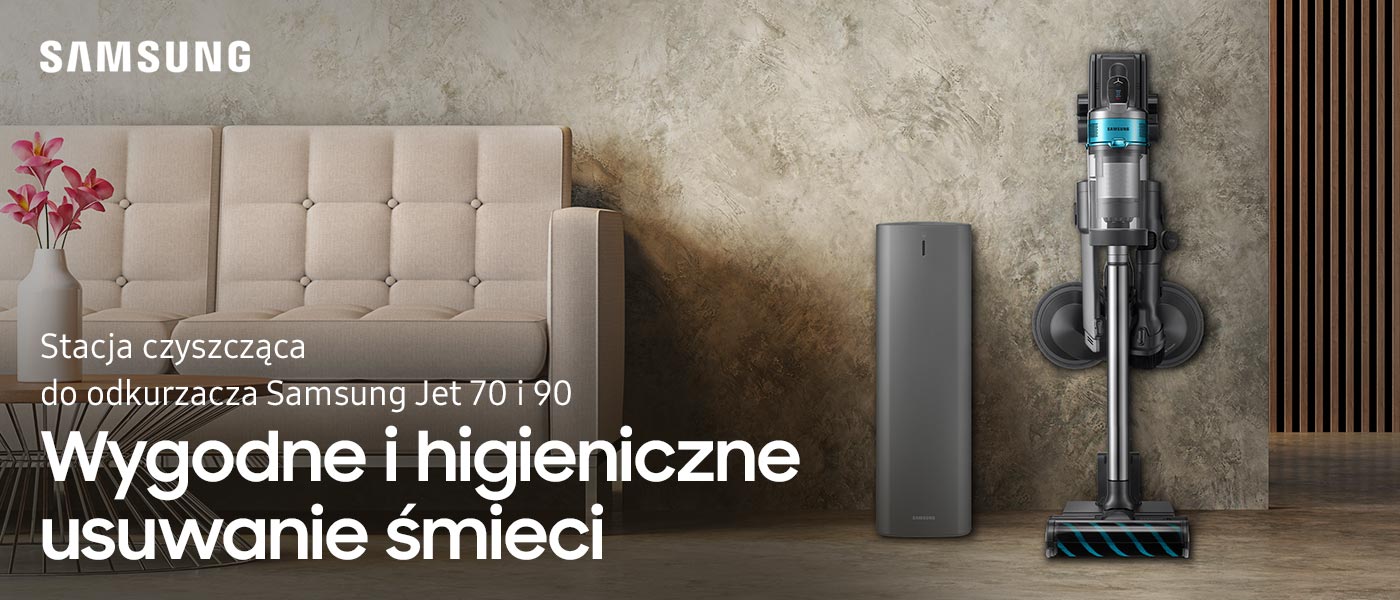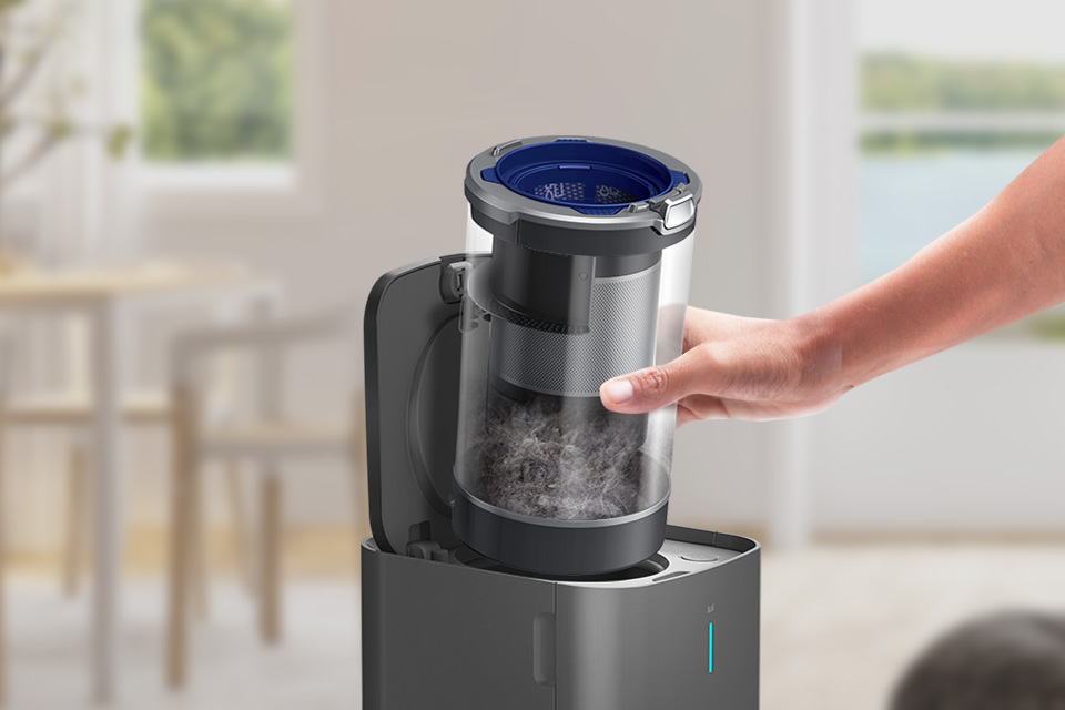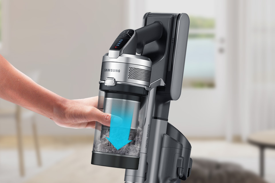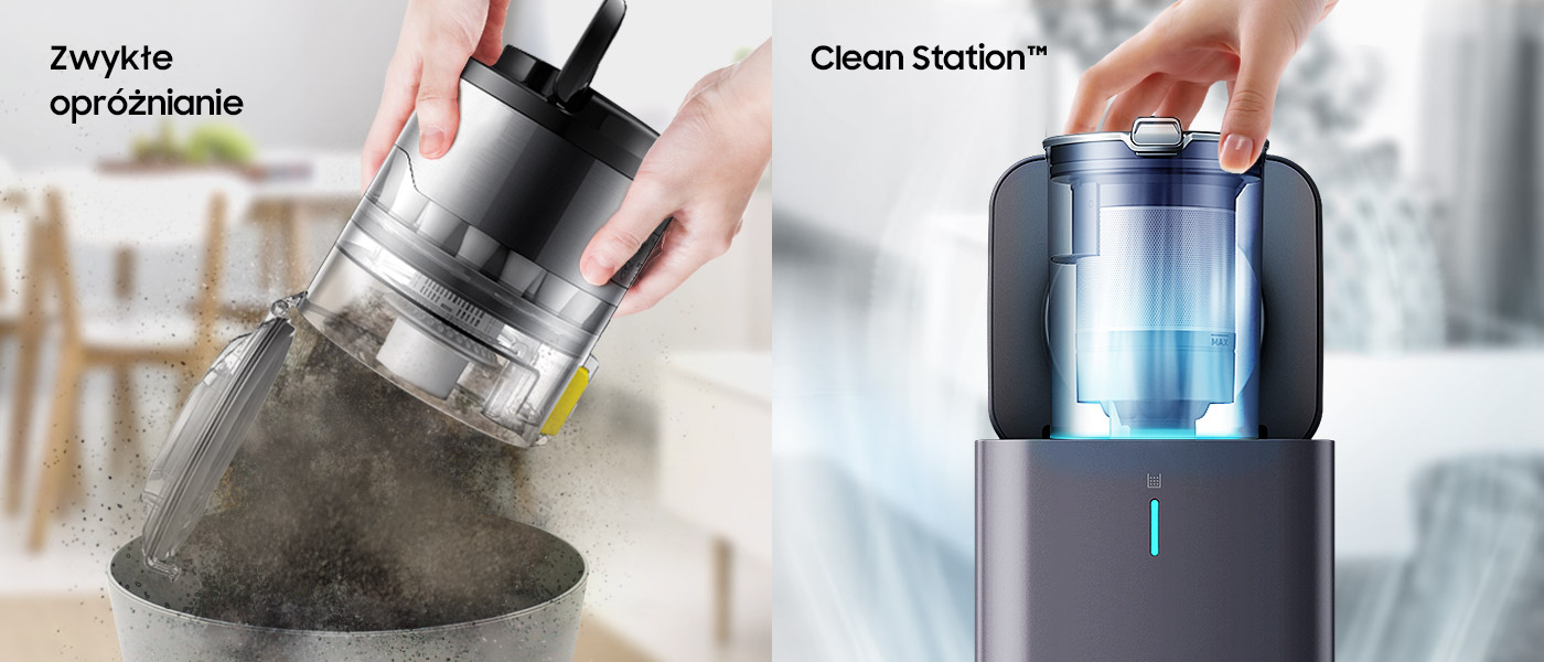 Відкрийте для себе революційну станцію для прибирання, присвячену бездротовому пилососу Samsung Jet™, яка зробить прибирання ще простішим. Відтепер спорожнення контейнера для бруду стане зручнішим і ефективнішим. Ви не будете вдихати пил і більше ніколи не забруднитесь. Просто від'єднайте його від пилососа та поставте на очисну станцію. Пил і бруд автоматично видаляються у великий мішок для бруду.