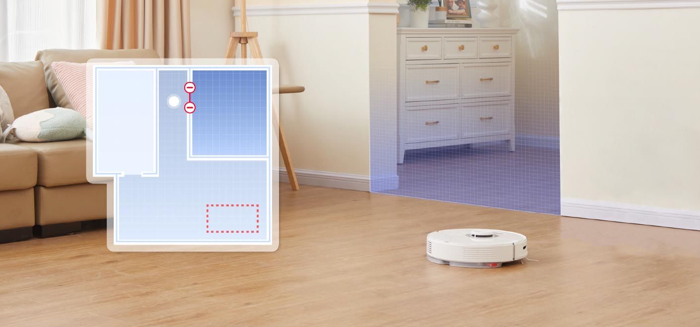 Зони відчуження визначають територію, куди робот не може потрапити, тоді як віртуальні стіни ідеально підходять, коли потрібно огородити кімнати чи кути. Ви можете вільно розміщувати їх на всіх поверхах свого будинку, тож вам не доведеться хвилюватися, що робот піде куди вам не потрібно.