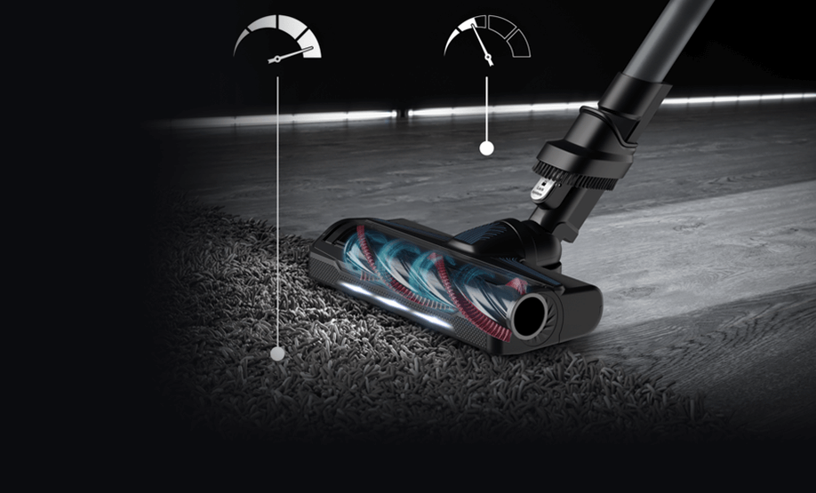 Під час роботи в АВТОМАТИЧНОМУ режимі X-Force Flex 9.60 автоматично розпізнає тип поверхні та автоматично регулює потужність всмоктування відповідно до поверхні, що пилососиться – коли пилосос торкається килима, він автоматично збільшує потужність, а коли він впаде на підлогу, він автоматично зменшить його.