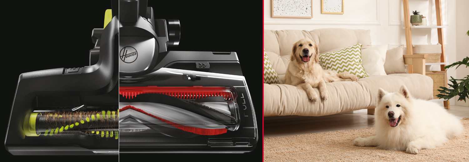 Пилосос Hoover забезпечить ідеальний симбіоз між усіма домочадцями, звільнивши домашній простір від пилу та волосся. Власники собак і котів тепер можуть використовувати надзвичайно ефективну міні-електричну щітку для видалення всієї шерсті з диванів, ліжок, крісел і килимів.