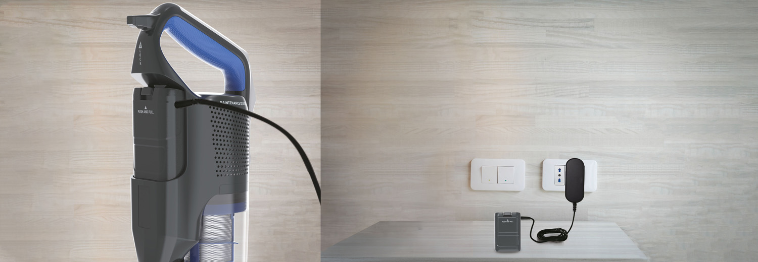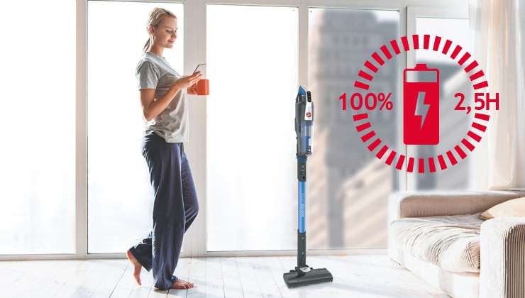 Hoover чудово усвідомлює, що сучасні пристрої мають бути не лише ефективними, але й завжди готовими до використання, заощаджуючи час своїх користувачів. Тому, закінчивши пилососити, просто підключіть батарею до зарядного пристрою та зарядіть її дуже швидко – всього за 2,5 години.