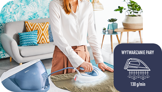 Швидше прасування, одним рухом. Прасування за допомогою парогенератора — суцільне задоволення. Прилад виробляє постійний потік пари з потужністю 130 г/хв пари і тиском 7,5 бар, завдяки чому складки зникають надзвичайно швидко і легко. Досить одного помаху праски, щоб позбутися від складних складок на тканинах.