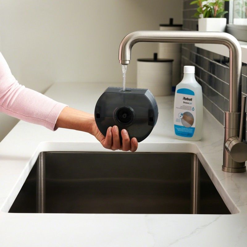 Braava jet® ретельно витирає будь-яку тверду поверхню: панелі, паркет, плитку, кераміку тощо, також досягаючи країв і кутів. Під час чищення він точно подає воду та рухається вперед і назад, видаляючи бруд, плями та липкі забруднення.