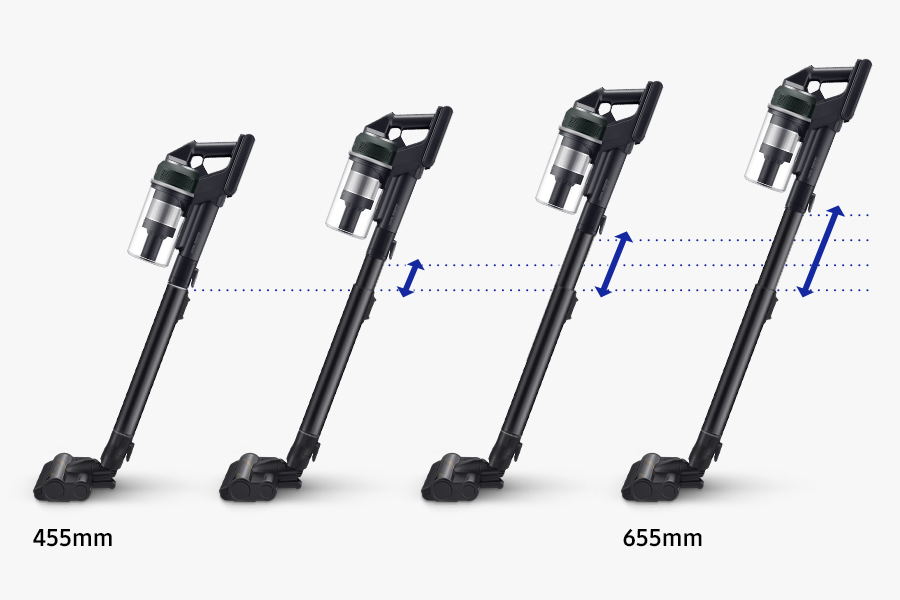 Пилососіть зручно та ергономічно. Легка конструкція забезпечує максимальну зручність використання та зменшує навантаження на зап’ястя. Ви також можете регулювати довжину телескопічної труби на 4 рівнях відповідно до свого зросту. Завдяки цьому ви можете легко прибрати весь будинок.