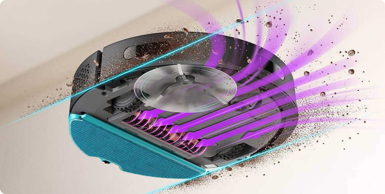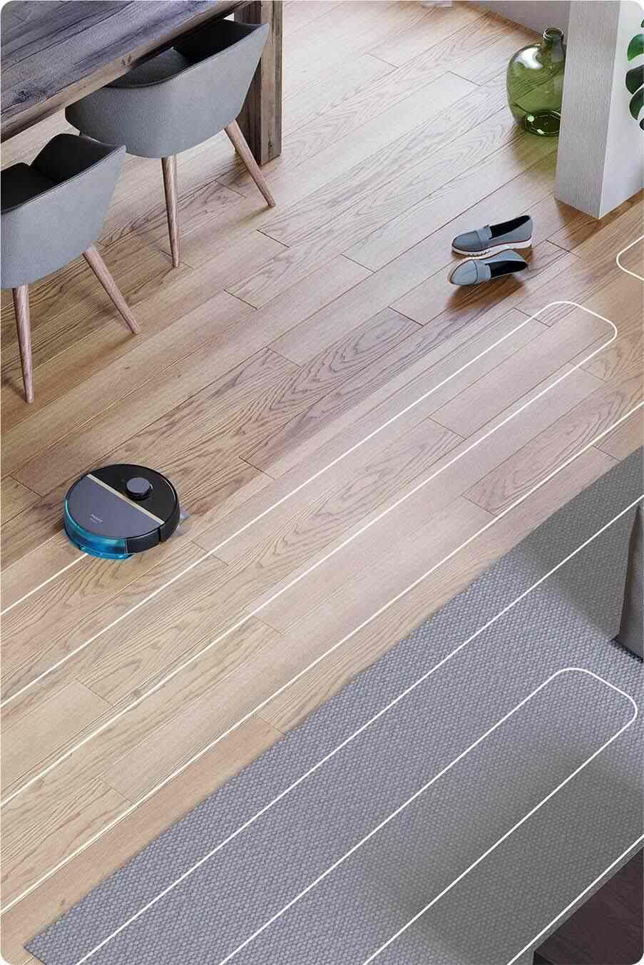 Завдяки інноваційній лазерній навігації 360° (LiDAR) робот може оптимально планувати свій маршрут між кімнатами та між меблями, щоб дістатися до кожного куточка та ближче до стін. Жодна область не залишиться поза увагою.