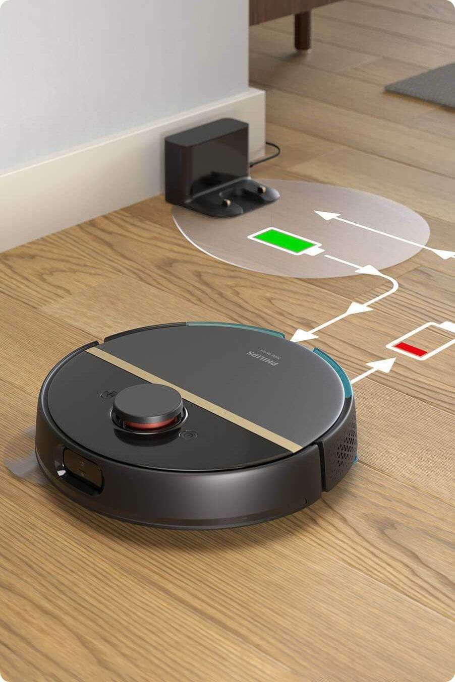 Робот-прибиральник Philips Aqua 7000 забезпечує дуже високу ефективність прибирання завдяки потужності 5000 Па. Вам більше не потрібно турбуватися про збір крихт, волосся чи більшого бруду – робот зробить це за вас.