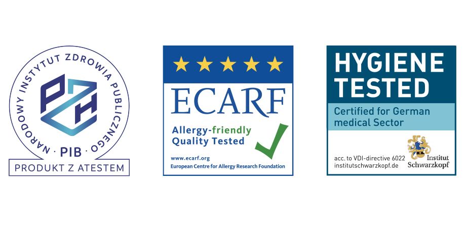 — Фонд Європейського центру досліджень алергії, який видав сертифікат ECARF, що підтверджує високу ефективність проти інгаляційних алергенів;