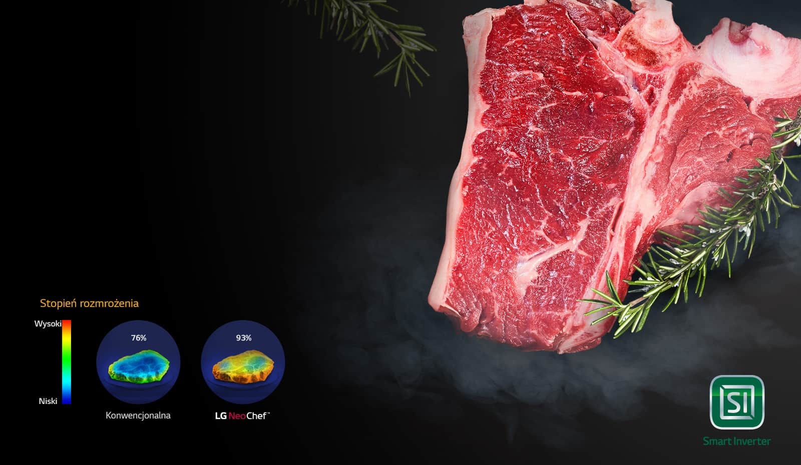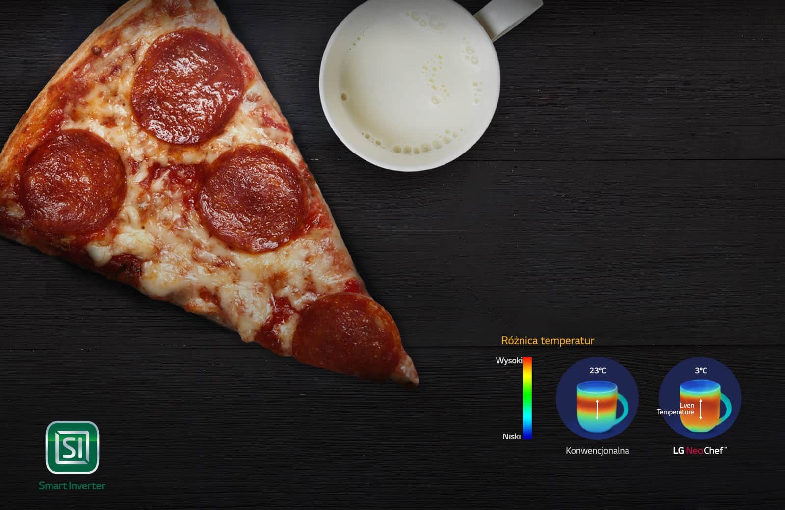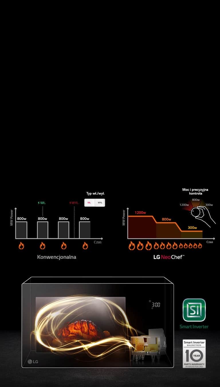 Інтелектуальна інверторна технологія LG забезпечує точне регулювання потужності, тож ви можете нагрівати та розморожувати різні продукти ще швидше. Регулювання температури дозволяє готувати страви, які раніше неможливо було приготувати в мікрохвильовій печі.