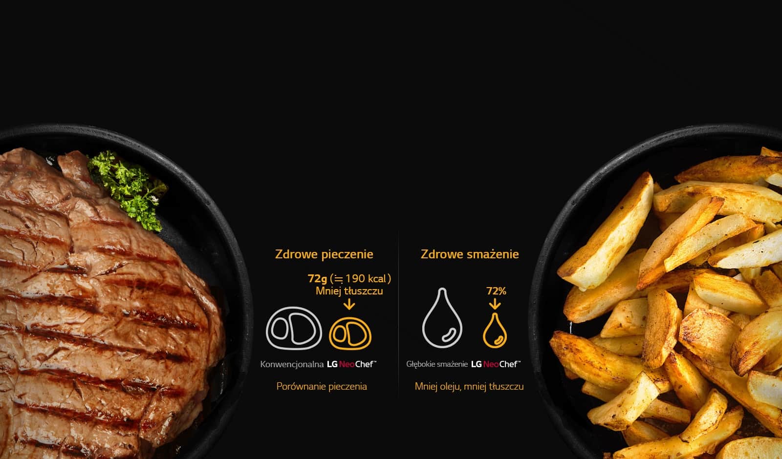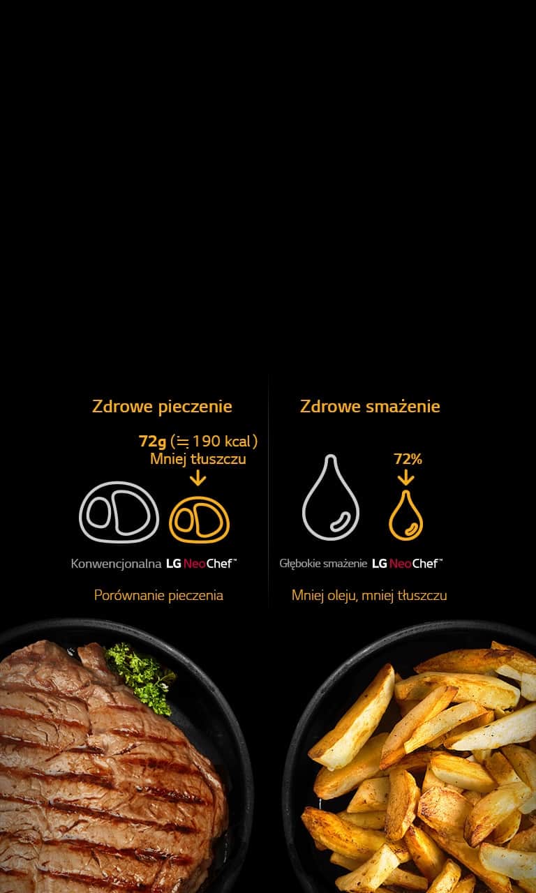 *Функція «Здорове смаження» застосовується до моделей із деком для підсмажування.*Тестований зразок: LG, середнього розміру, конвекція (MJ39XX) / метод тестування: внутрішній тест LG.