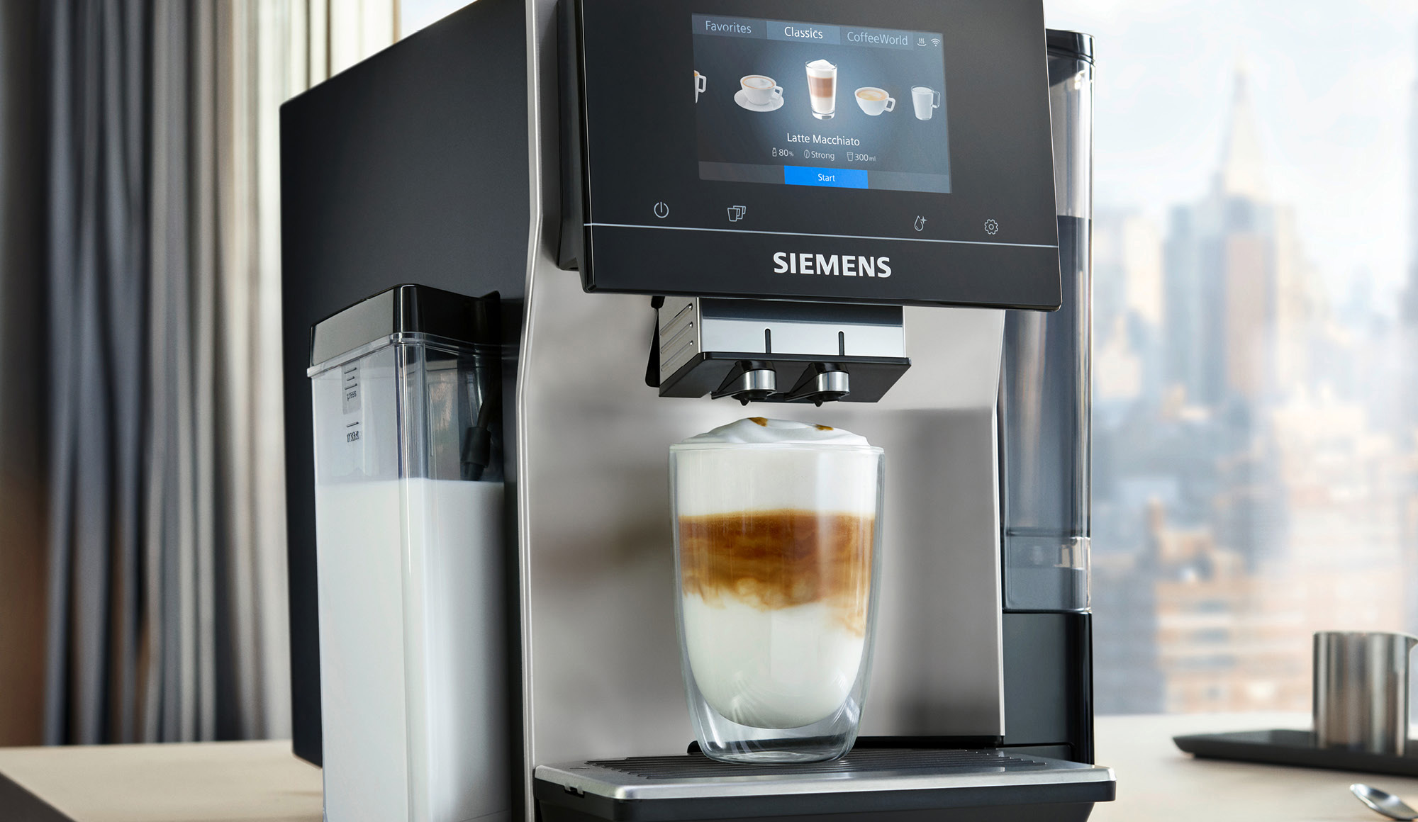Бренд Siemens поєднує інноваційні технології з прекрасним дизайном для створення ряду інтелектуальних та інтуїтивно зрозумілих пристроїв. Нова повністю автоматична кавова машина Siemens EQ700 оснащена найкращими технологіями, завдяки яким кожна чашка кави, яку ви приготуєте, буде смакувати, як з кавомашини бариста. Налаштувати каву на власний смак і вподобання ще ніколи не було так просто. Завдяки широкому асортименту міжнародної кави, єдиною складністю буде вибрати правильну фірмову страву на певний день. Чашка за чашкою підвищить ваші очікування від кави.