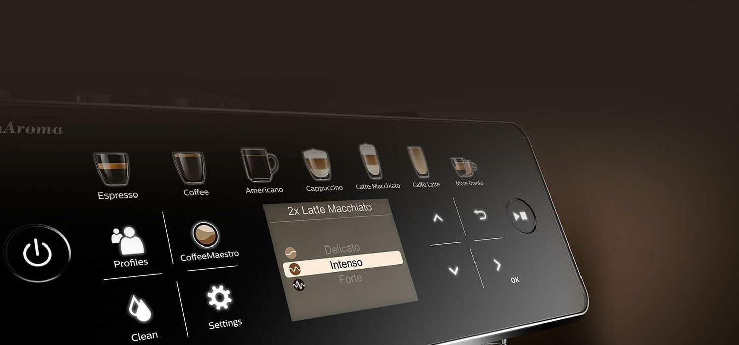 Ароматний еспресо, ефірне ристретто чи, можливо, чуттєве капучіно? Налаштуйте параметри та насолоджуйтесь чашкою досконалості щодня, приготованою у вас удома. Інтуїтивно зрозуміле керування в поєднанні з сучасними технологіями, укладеними в компактному та елегантному пристрої, перенесе вас у світ, повний ароматів, смаку та насолоди.