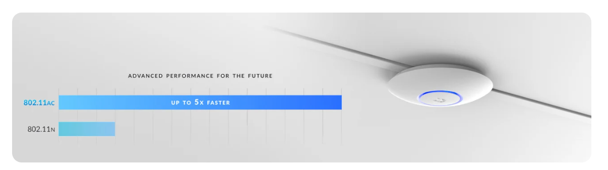 Пристрій UniFi AP AC PRO забезпечує одночасний зв’язок на двох частотах за допомогою технології 3x3 MIMO.